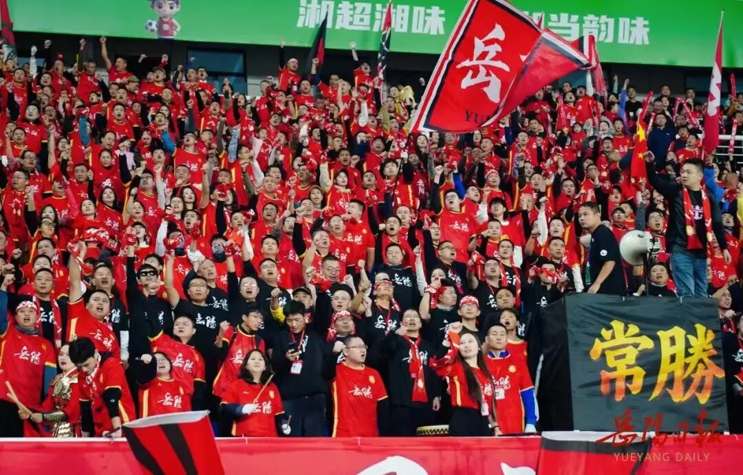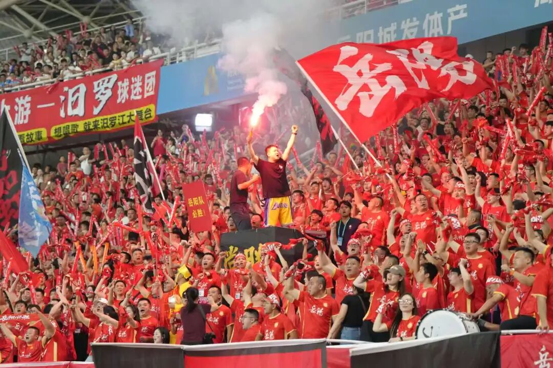 当球队遭遇多轮不胜时,看台上的回应不是抱怨,而是更加齐整的“战斗,岳阳队!”当对阵株洲,开场便告失球甚至出现乌龙球时,球迷的助威声浪不降反升。