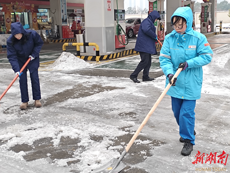 岳阳中石油辖区加油站 ,哪里有雪情,哪里就有“除雪人”身影。分公司党委动员机关与各加油站干部员工积极开展除冰雪战斗,大家手持工具分组协作,对加油站进出站口、加油现场、客户通道等重点区域开展“即下即清、雪停路通”专项清理,实现了站内及周边道路无积雪、无积冰,为客户创造了安全顺畅的消费环境。员工们冒雪奋战的身影,成为风雪中最动人的风景。
