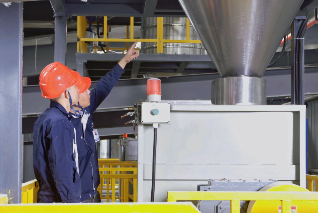 工作人员正对设备进行检查数据显示,新基源每年可回收处理约30万吨废弃塑料,年产PCR材料17万吨,助力全球每年减少约75万吨碳排放,相当于节省2万吨原油资源、减少约30万棵树木被砍伐,为实现节能减碳提供了可量化的实践样本。