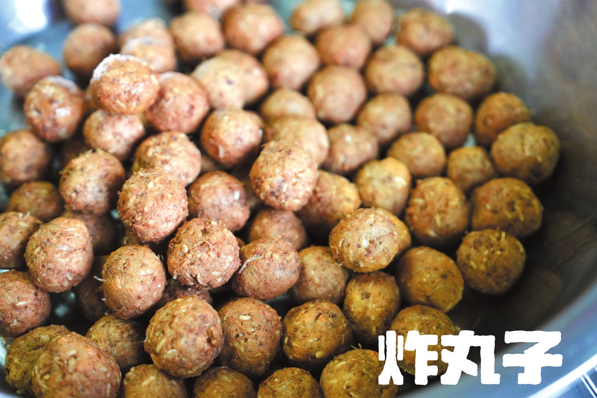 一头年猪,撑起云溪人整个春节的肉食盛宴。除了现煮的杀猪菜,剩余猪肉各有归宿:一部分切成长条,抹上盐、花椒、八角等调料,揉搓入味后悬于灶梁,借柴火烟气熏成油亮腊肉,焦香与醇香深度交融;一部分剁成肉馅,加葱姜末、淀粉拌匀上劲,彭阿姨的儿媳忙着炸丸子,虎口一挤,圆润肉馅滚落油锅,在热油中翻滚成金黄色,出锅后外酥里嫩、汁水丰盈;还有些灌制成腊肠,肠衣裹着饱满肉馅,晾干后蒸炒皆具浓醇咸香,每一口都是肉香与年味的交织。