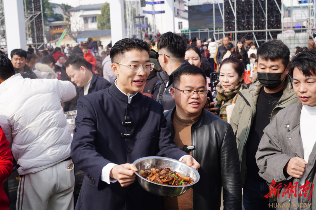 惊喜接踵而至,千万粉丝网红郭有才突然现身后厨,端着一锅热气腾腾的鱼火锅,朝着镜头热情招呼,“来,尝尝咱们岳阳的鱼!”现场欢呼声再度沸腾,手机镜头纷纷记录下这暖心一幕。