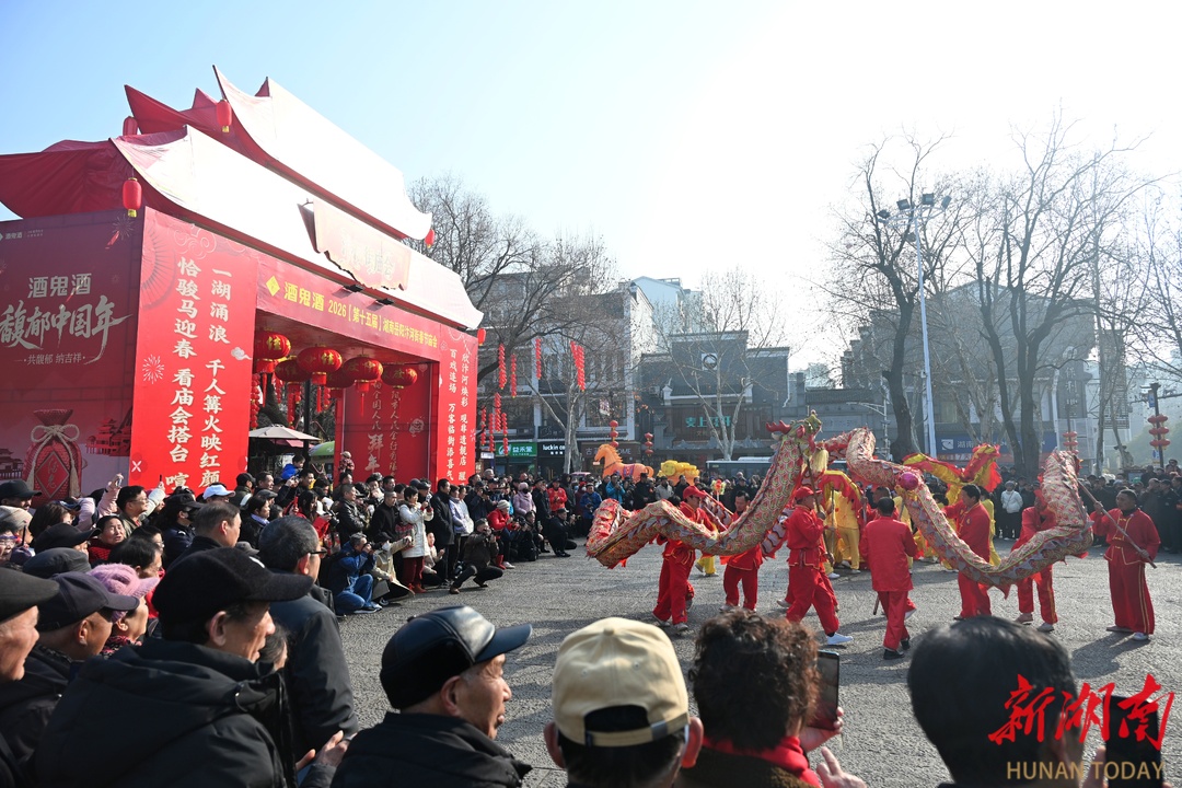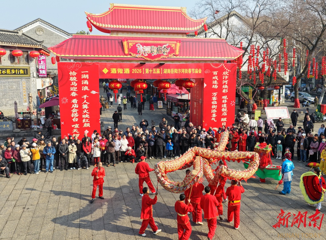 2月18日,大年正月初二,岳阳第十五届汴河街春节庙会火爆进行,“非遗大餐”轮番上演。
