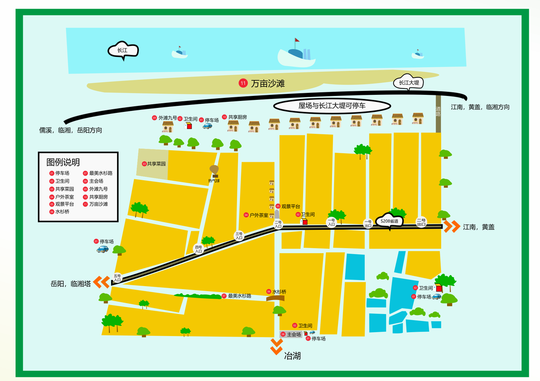 骑行最美岸线。江南镇上,32.5公里的长江干堤被誉为“最美长江岸线”的骑行绿道。这里曾是防汛抗洪的主阵地,如今是“守护好一江碧水”的生态实践区。路面平整宽敞,一边是烟波浩渺、百舸争流的母亲河,另一边则是阡陌纵横、花海连绵的田园风光。无论是专业的骑行爱好者,还是悠闲的亲子家庭,都可以在这里找到属于自己的节奏。迎着江风骑行,看云卷云舒,观潮起潮落,途中还能经过鸭栏驿站、鸭栏码头、谷花暴动红色纪念碑等景点,在制高点远眺江湖相接的壮阔景色。这不仅是一次有氧运动,更是一场与江河对话的身心疗愈。