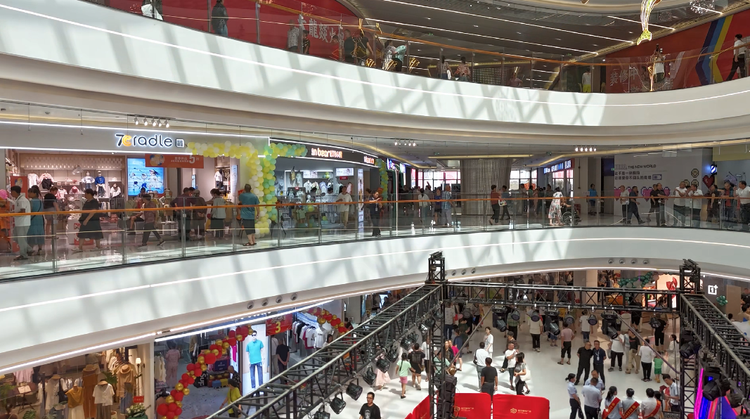 历经3年多的精心建设,2024年7月18日,总投资约3.5亿元、商业经营面积达4万平方米的家宁城市广场开业。目前已有188家品牌入驻,其中超过80%是首次进入君山的“首店”品牌。尤为值得一提的是,广场内打造的“候鸟飞”“江豚跃”“麋鹿奔”三大主题空间,巧妙融入了君山独有的生态文化印记,让商业空间散发出亲切的本土温度。