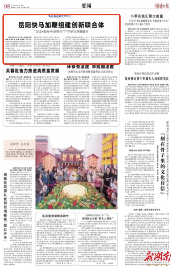 聚焦国家重大需求,岳阳系统布局组建创新联合体建设。该市精准锚定现代产业赛道,围绕石化新材料、高端医药制剂、生态环境治理等领域,由龙头企业、专精特新企业牵头,联动产业链上下游企业、高校及科研机构组建特色创新联合体,实现“企业+高校+科研院所”产学研用深度融合。目前,已成功创建3家省级创新联合体,包括湖南凯迪牵头的“一湖四水”水环境与矿山协同治理产业创新联合体、湖南科伦牵头的粉液双室袋与新型给药系统制剂创新联合体、兴长石化牵头的湖南省聚合物新材料创新联合体,推动产业链与创新链深度融合。