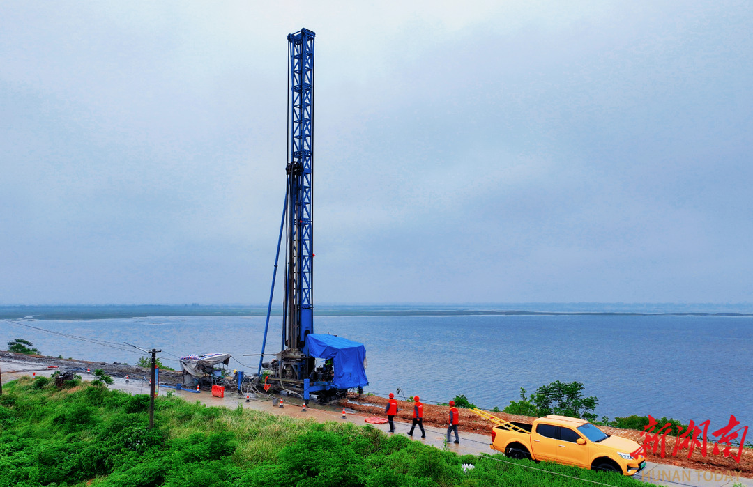 湖南日报·新湖南客户端4月21日讯(通讯员 刘华)连日来,岳阳地区遭遇强对流天气侵袭,短时强降水导致洞庭湖区汛情风险升级。4月21日,在麻塘垸防洪大堤隐患整治工程现场,钻机轰鸣、机械穿梭,一场与时间赛跑的堤防加固攻坚战紧张推进。国网岳阳供电公司麻塘供电所“电骆驼”共产党员服务队闻“汛”而动,踏泥泞、冒阴雨,深入施工一线开展安全用电专项检查,以坚实行动为防汛工程筑牢电力安全屏障。